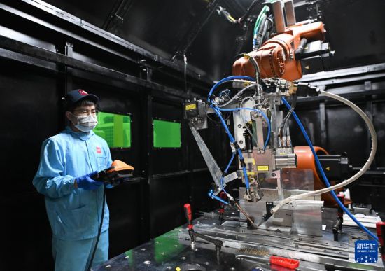6月27日,任务职员正在位于惠州的广东利元亨智能拆备股分无限公司操纵激光作战。