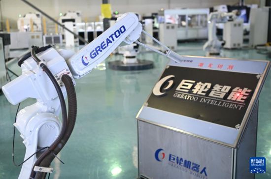 位于掀阳的巨轮智能拆备股分无限公司的激光切割呆板人(6月29日摄)。